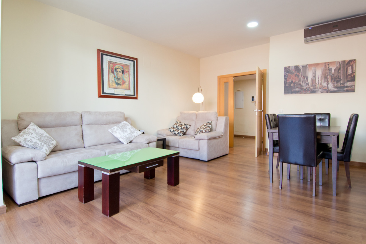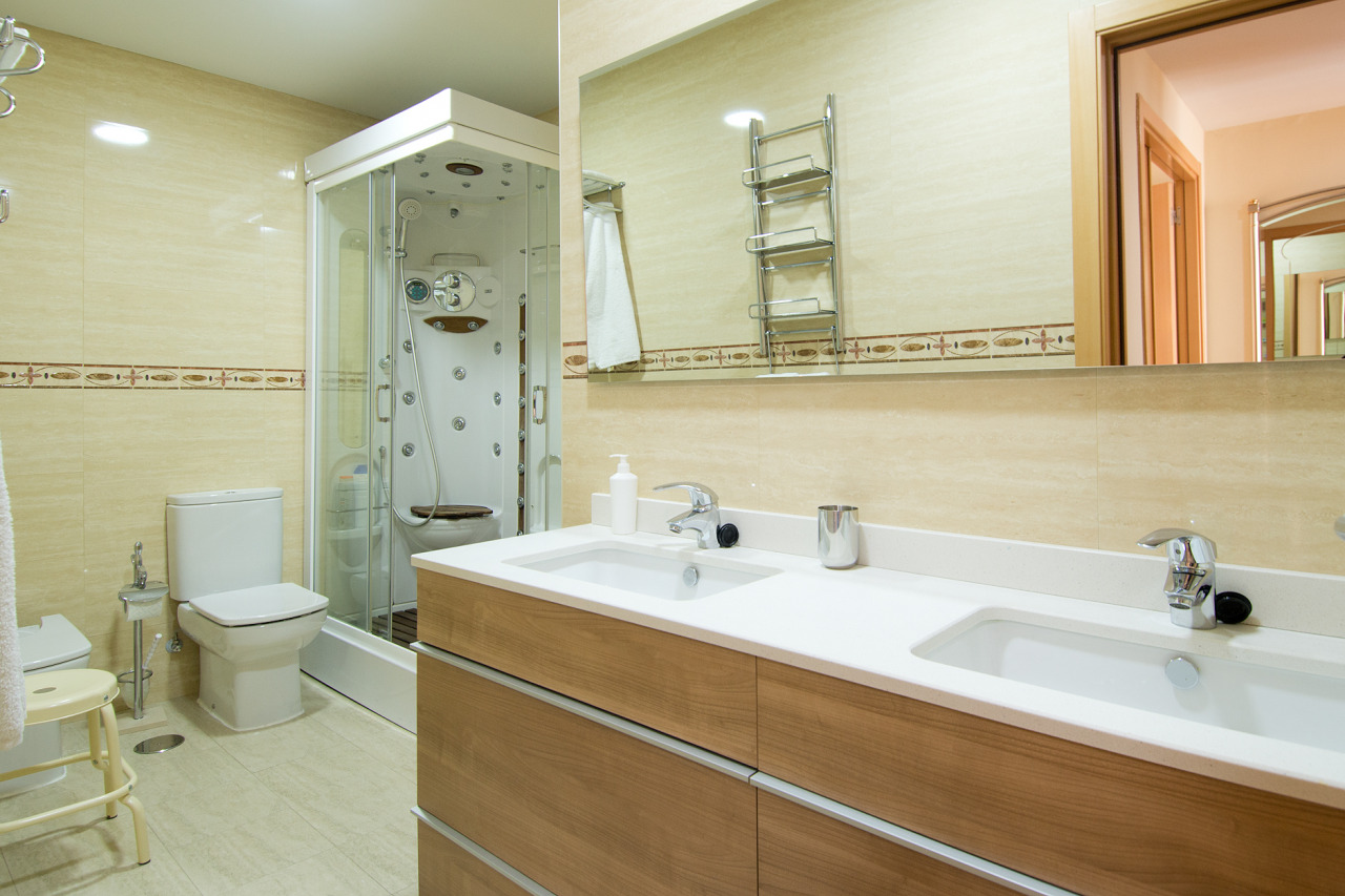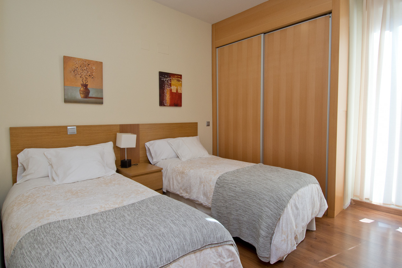 Este alojamiento tiene 130m2, cuenta con dos habitaciones; una con cama doble y la otra con 2 camas individuales, 1 baño con cabina y 1 aseo, salón/comedor, una acogedora terraza y la cocina está completamente equipada, con: microondas, frigorífico, batería de cocina, tetera, horno, máquina de café.