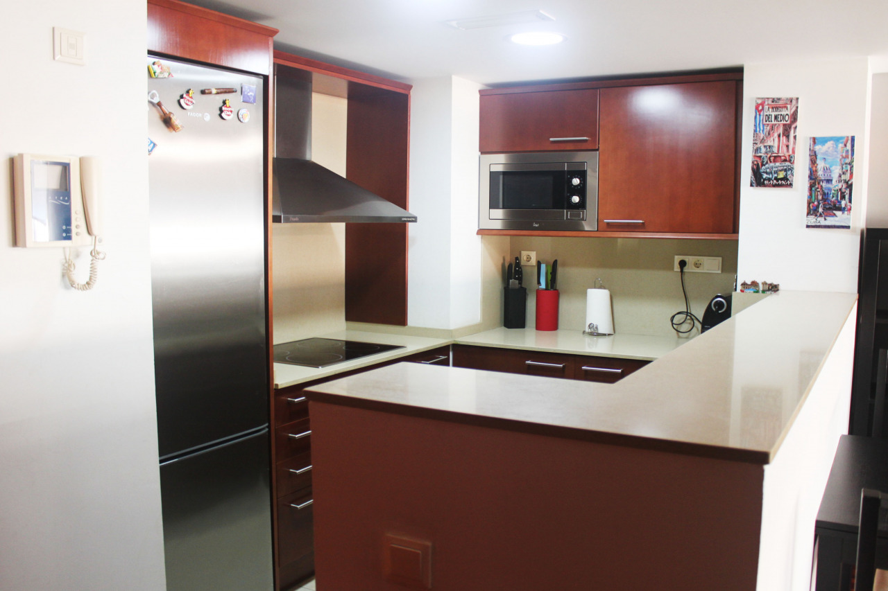 Este apartamento dispone de 2 dormitorios con cama doble, 1 baño con bañera, salón/comedor y una cocina estilo office/americana, equipada con: microondas, frigorífico, batería de cocina, lavavajillas, tetera, horno, máquina de café.
