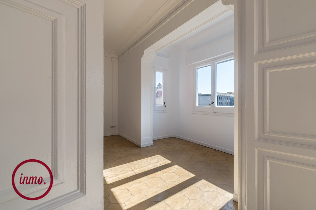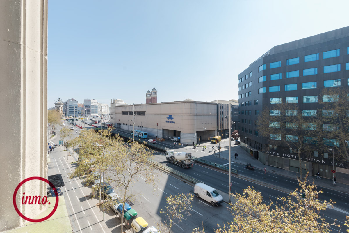 Luminoso piso exterior recién reformado con un gusto exquisito, situado en una de las zonas neurálgicas de Barcelona como lo es la plaza España. Parada de Metro Plaça Espanya.
