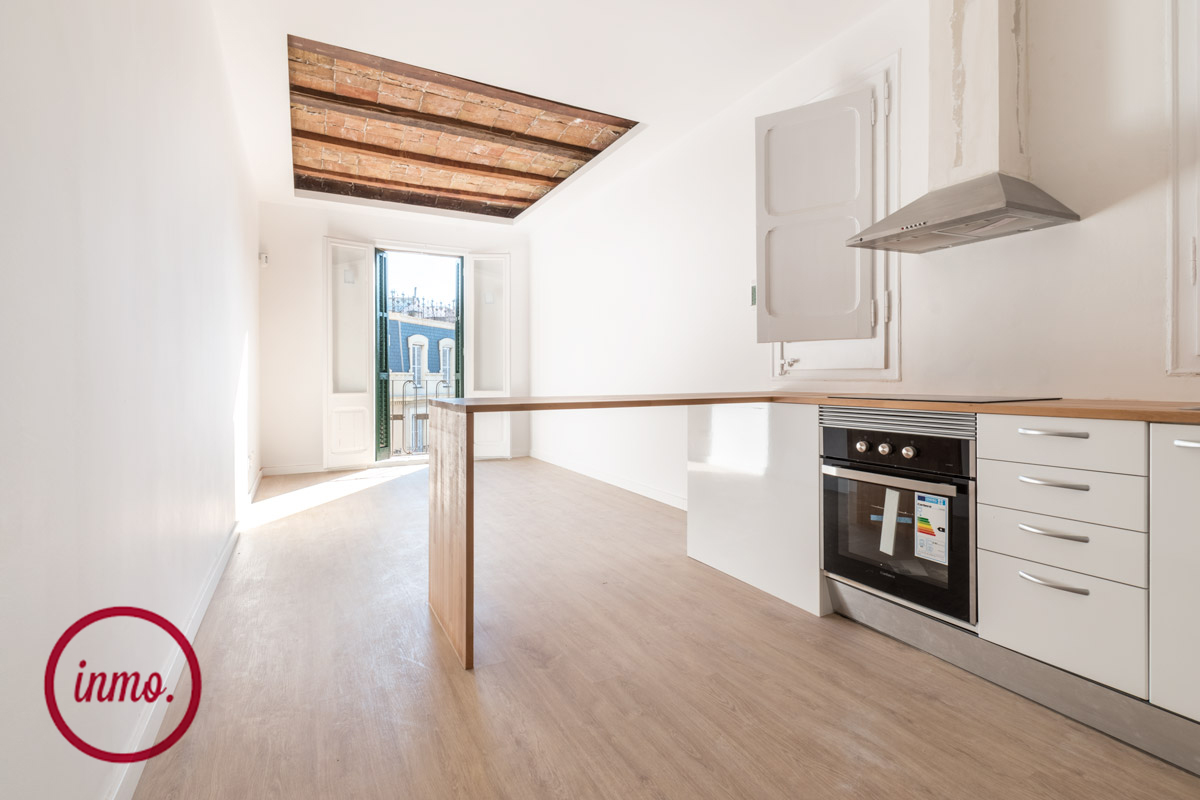 Esta vivienda se encuentra ubicada en una cuarta planta, por lo que debido a su altura goza de mucha luz durante todo el día. El inmueble distribuye sus 48 metros cuadrados en una habitación doble, un amplio y luminoso salón comedor y una moderna cocina americana con barra abierta al salón. Por último, un bonito baño completo con plato de ducha.