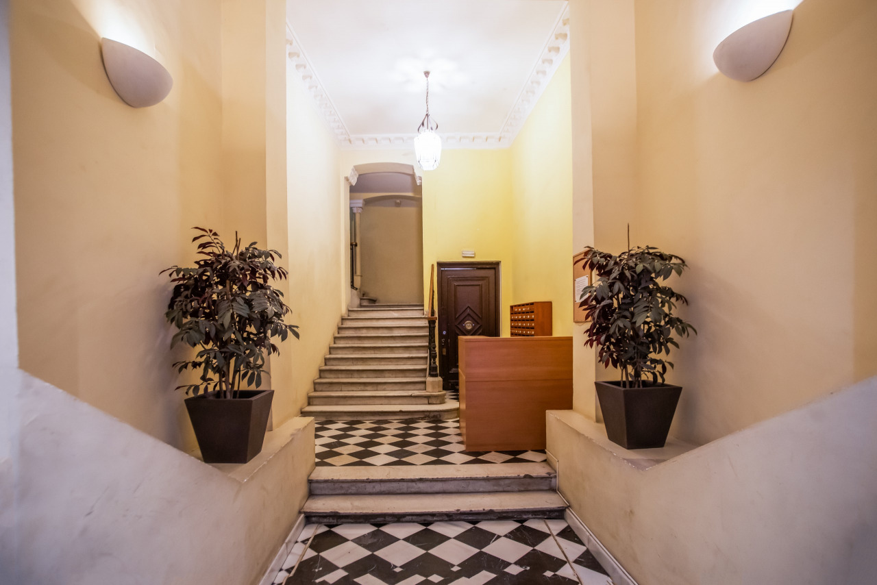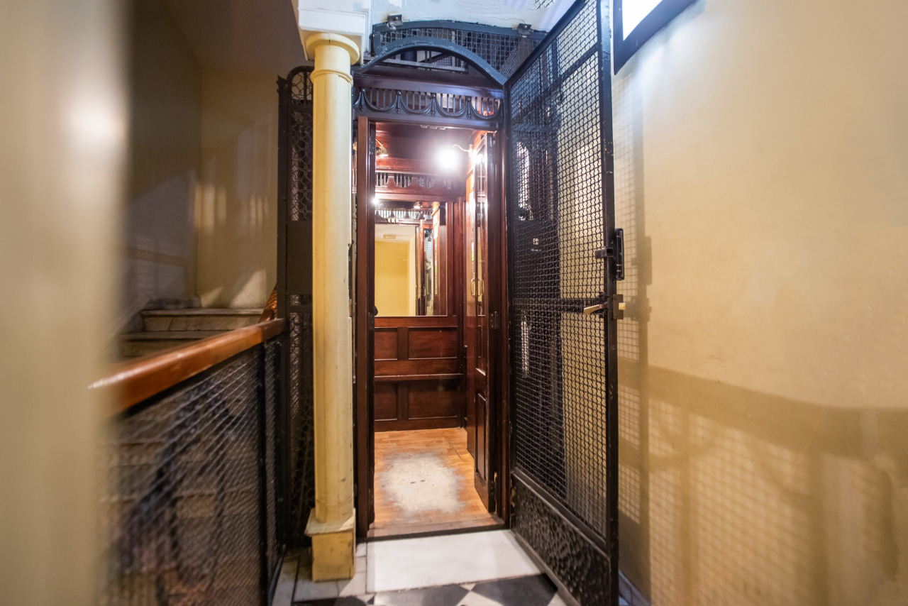 La finca, construida en 1900, presenta techos altos con molduras originales y suelos de madera de cerezo. Con pocos vecinos, la finca ofrece tranquilidad y cuenta con un ascensor clásico y un elegante portal.